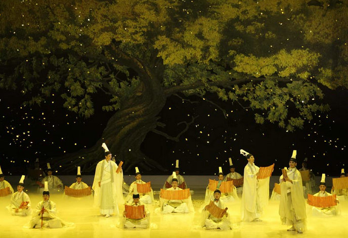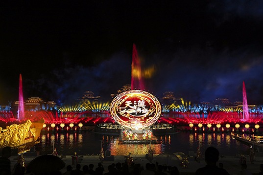 A performance at Xinghanshengjing, a new scenic area in Hanzhong city, Shaanxi province.