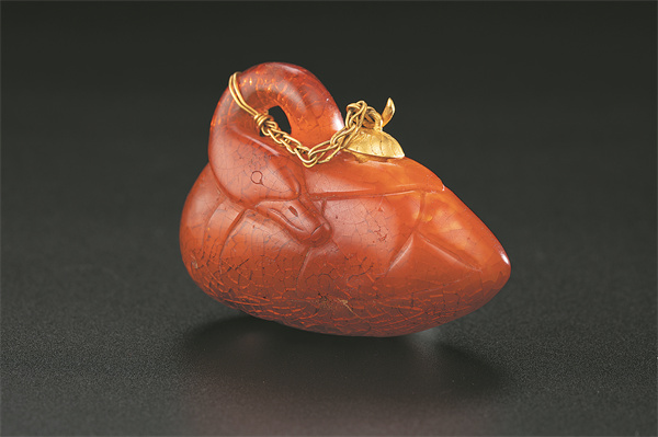 A swan goose-shaped amber ornament from the burial chamber of the princess and her husband.[Photo provided to China Daily]